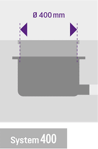 Ο Aquapump XXL με διάμετρο φρεατίου Φ1400 mm, μπορεί να αντιμετωπίσει ακόμη και μεγάλες ποσότητες λυμάτων και είναι ιδιαίτερα κατάλληλο για εμπορική και βιομηχανική χρήση χάρη στο συνολικό του μέγεθος.