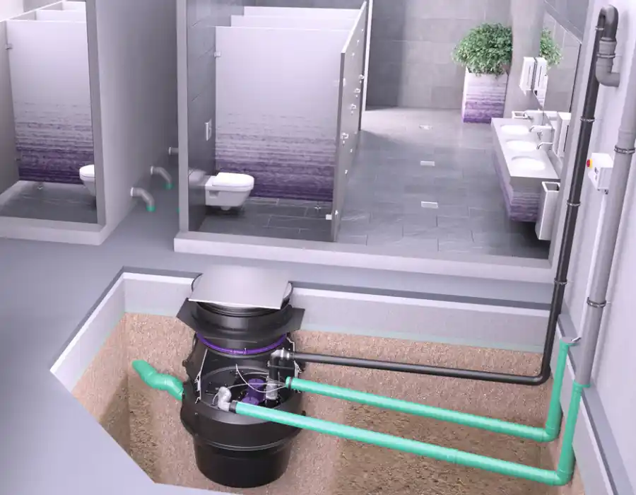 Επιδαπέδια εγκατάσταση ή εγκατάσταση εντός πλάκας σκυροδέματος. Συνεχόμενη άντληση λυμάτων μέσω του βρόγχου επιστροφής υδάτων, αποτρέποντας έτσι την είσοδο νερού