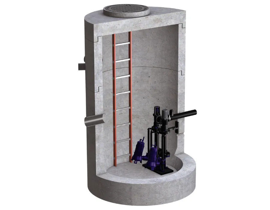Επιλογή κατάλληλου σταθμού ανύψωσης ή αντλητικού σταθμού με τον θάλαμο και το κάλυμμα πρόσβασης του φρεατίου.