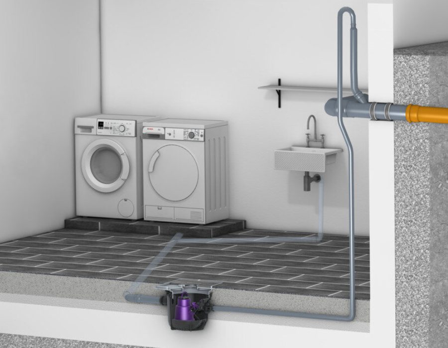 Όταν ένα πλυντήριο ρούχων, ντους ή τουαλέτα βρίσκεται στο υπόγειο, είναι σημαντικό να λάβουμε υπόψη πώς θα αποχετευτούν τα λύματα. Συνήθως η αποχέτευση στο υπόγειο είναι κάτω από το επίπεδο επιστρεφόμενων υδάτων. Αυτό σημαίνει ότι τα λύματα δεν μπορούν να ρέουν με φυσική κλίση προς την κεντρική αποχέτευση, όπως συμβαίνει σε ένα σύστημα βαρύτητας, αλλά πρέπει να προωθηθούν με ένα σταθμό ανύψωσης ή μία αντλία μέσω ενός βρόγχου επιστρεφόμενων υδάτων. Εκτός από το ύψος άντλησης, ο τύπος των λυμάτων είναι ένα σημαντικό κριτήριο κατά την επιλογή του κατάλληλου συστήματος: το μαύρο νερό (λύματα με στερεά) απαιτεί πάντα διαφορετικές λύσεις από το γκρίζο νερό (λύματα χωρίς στερεά).